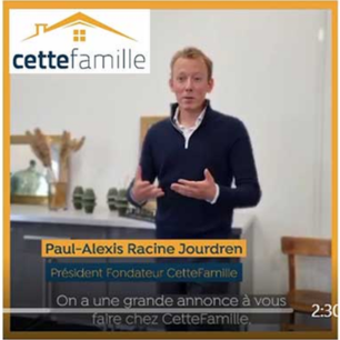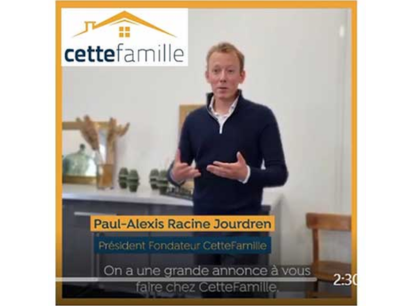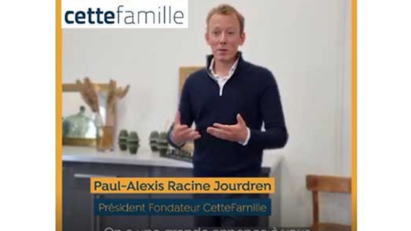 Visuel promotionnel du président fondateur de CetteFamille annonçant une grande nouvelle lors d'une conférence de presse.